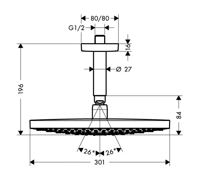 De Hansgrohe Raindance Select S 300 2jet hoofddouche met plafondbevestiging (100 mm) is ideaal voor een probleemloze modernisering van uw douche. De grote douchekop geeft ultiem doucheplezier met de twee soorten stralen die uw hele lichaam in een regendouche hullen,