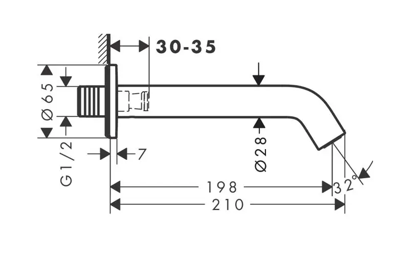 lengte uitloop 198 mm