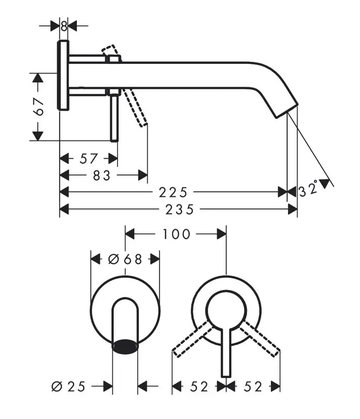hendelbediening – de hendel kan links of rechts worden geplaatst, afhankelijk van de montagelichaam
