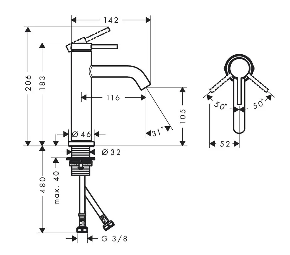 kraanhoogte 183 mm