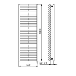 Aqualine Verwarming – Radiator Tondi 600×1330 Cm, Centrale Aansluiting, Mat Zwart DT486T