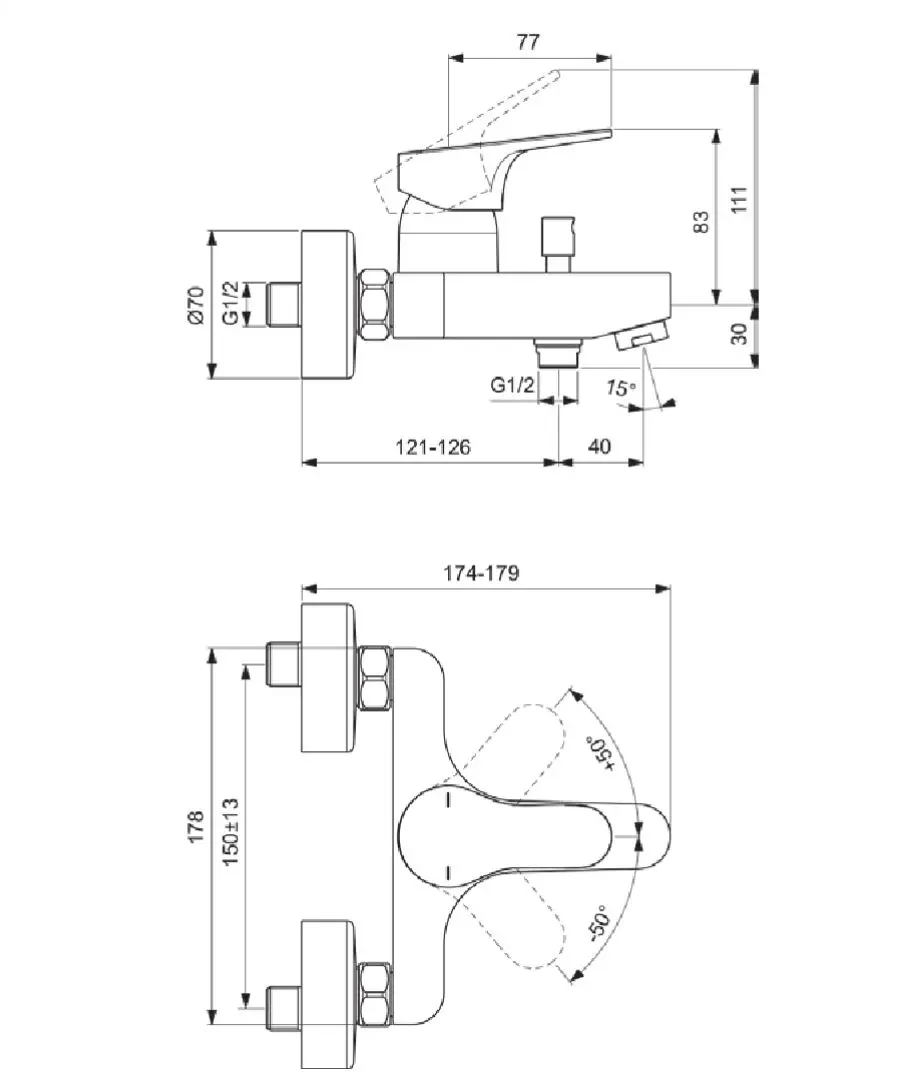 Wandgemonteerde badkraan