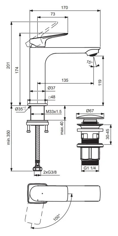- lengte uitlaat: 135 mm