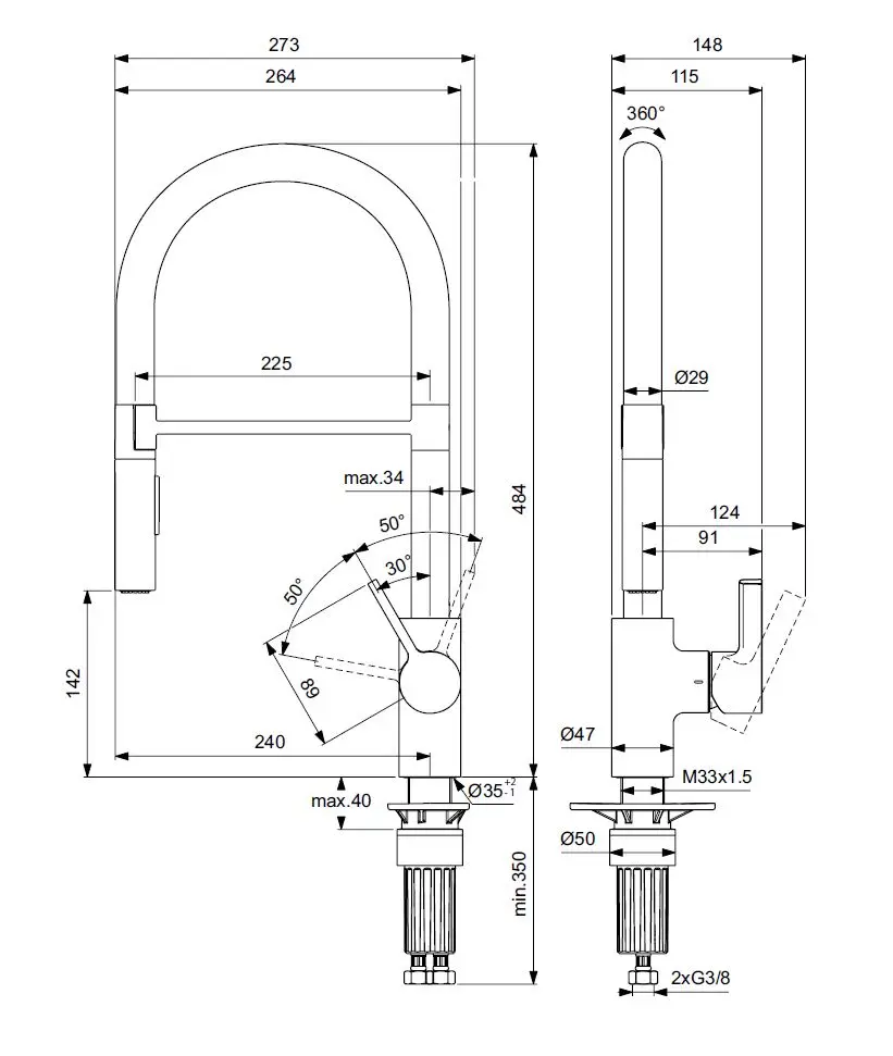 - kraanhoogte 484 mm