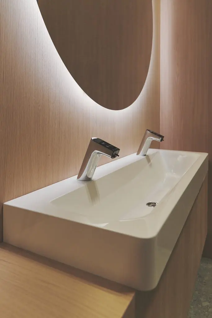 Contactloze wastafelkraan met geïntegreerde doseerder voor vloeibare zeep – kortere wastijden en geringere kosten