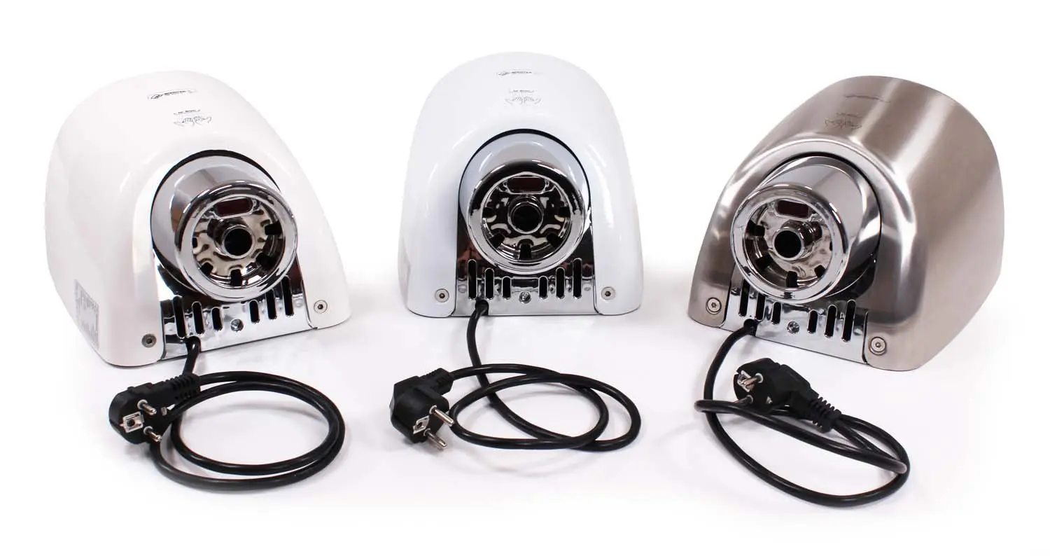 De BOOSTER handdroger onderscheidt zich van andere handdrogers door het opvallende verchroomde ronde mondstuk. Dankzij de krachtige 550 W motor gaat het drogen van de handen heel snel.