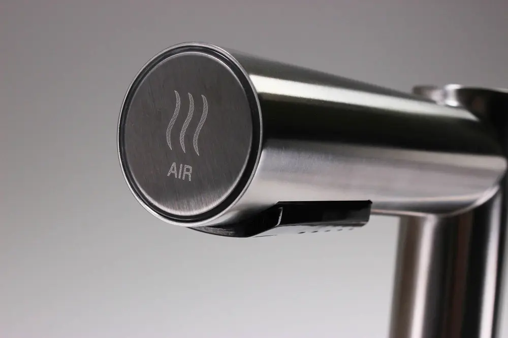 Naast bescherming tegen kortsluiting en overbelasting is de droger ook uitgerust met een automatische stopfunctie. Bij te lang gebruik schakelt hij automatisch uit, na 45 seconden continu gebruik wordt het drogen uitgeschakeld. De droogunit is veilig verborgen onder de gootsteen, beschermd tegen mogelijke vandalen