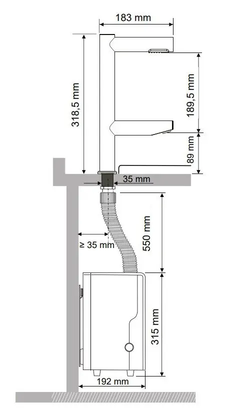 - voor de installatie van de kraan zijn geen bouwkundige aanpassingen nodig, de droogunit wordt gemonteerd aan de muur onder de wastafel of in het wastafelmeubel
