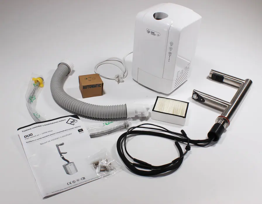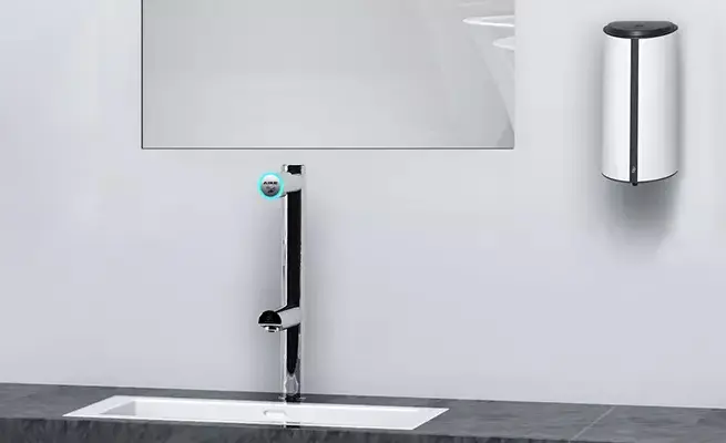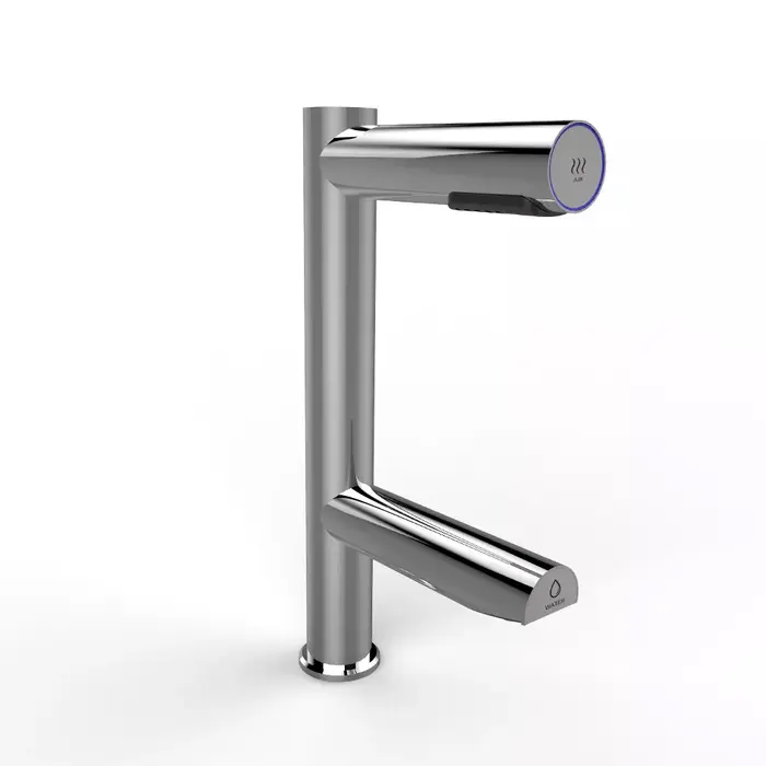 Het innovatieve ontwerp van de Jet Dryer DUO combineert een jetdroger met een automatische kraan. Aanzetten is contactloos, als u uw handen onder de kraan houdt, begint het water automatisch te stromen op een vooraf ingestelde temperatuur. Het mondstuk van de droger bevindt zich direct boven de kraanuitgang. Als de temperatuur in het toilet laag is, schakelt de Jet Dryer DUO automatisch de luchtverwarming in.