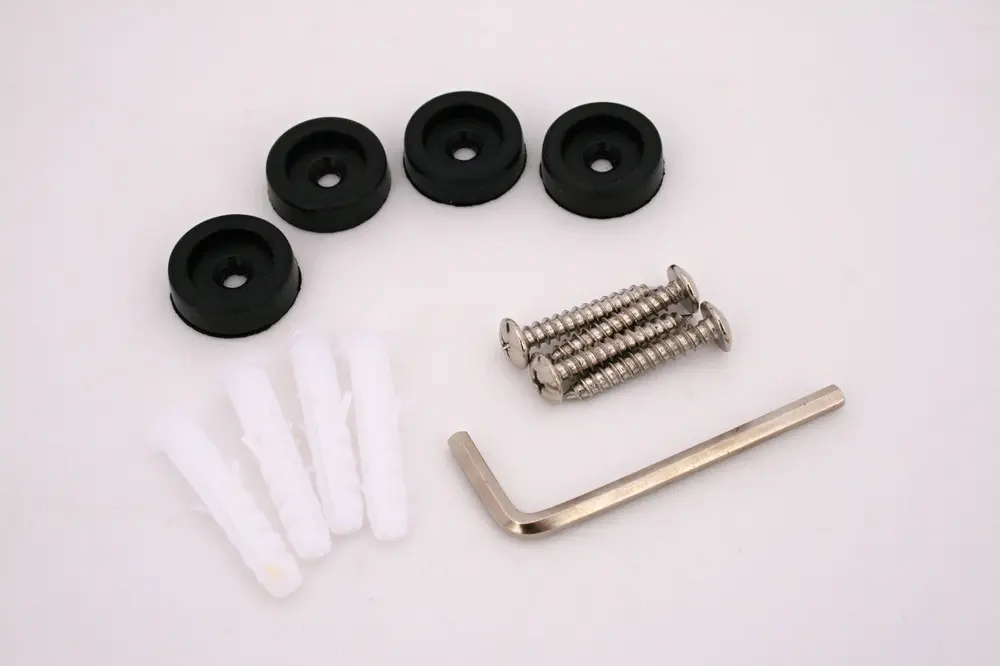 montagehandleiding, imbussleutel, 4 pluggen 5 mm, 4 zelftappende schroeven 5 x 25 mm.
