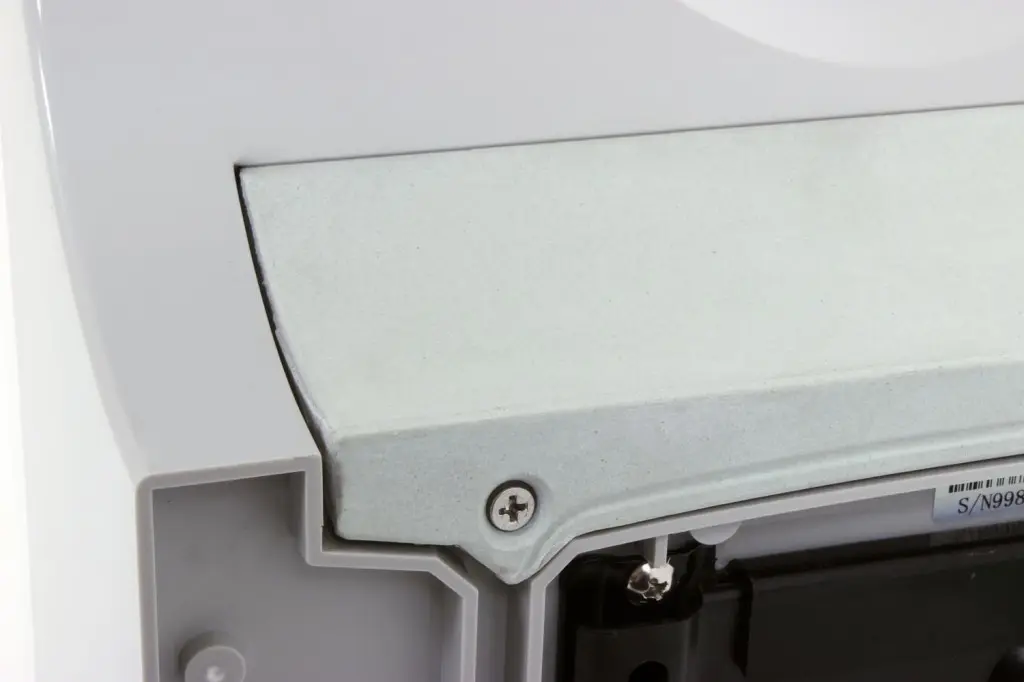 Het corpus van de droger is vervaardigd van ABS kunststof in elegant wit. Dit materiaal is sterk en duurzaam. Het onderhoud is eenvoudig; het is voldoende om de droger af te nemen met een vochtige doek met een gangbaar reinigingsmiddel.