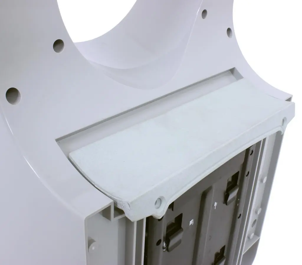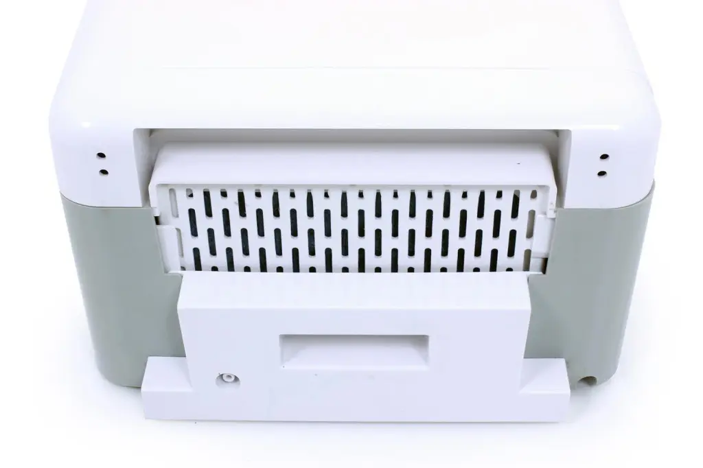 Het corpus van de droger is vervaardigd van ABS kunststof in elegant wit. Dit materiaal is sterk en duurzaam. Het onderhoud is eenvoudig; het is voldoende om de droger af te nemen met een vochtige doek met een gangbaar reinigingsmiddel.
