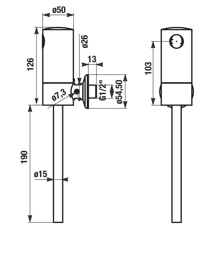 - reageert op de aanwezigheid van een gebruiker voor het urinoir op een afstand van max. 0,7 m van de sensor voor langer dan 7,5 s