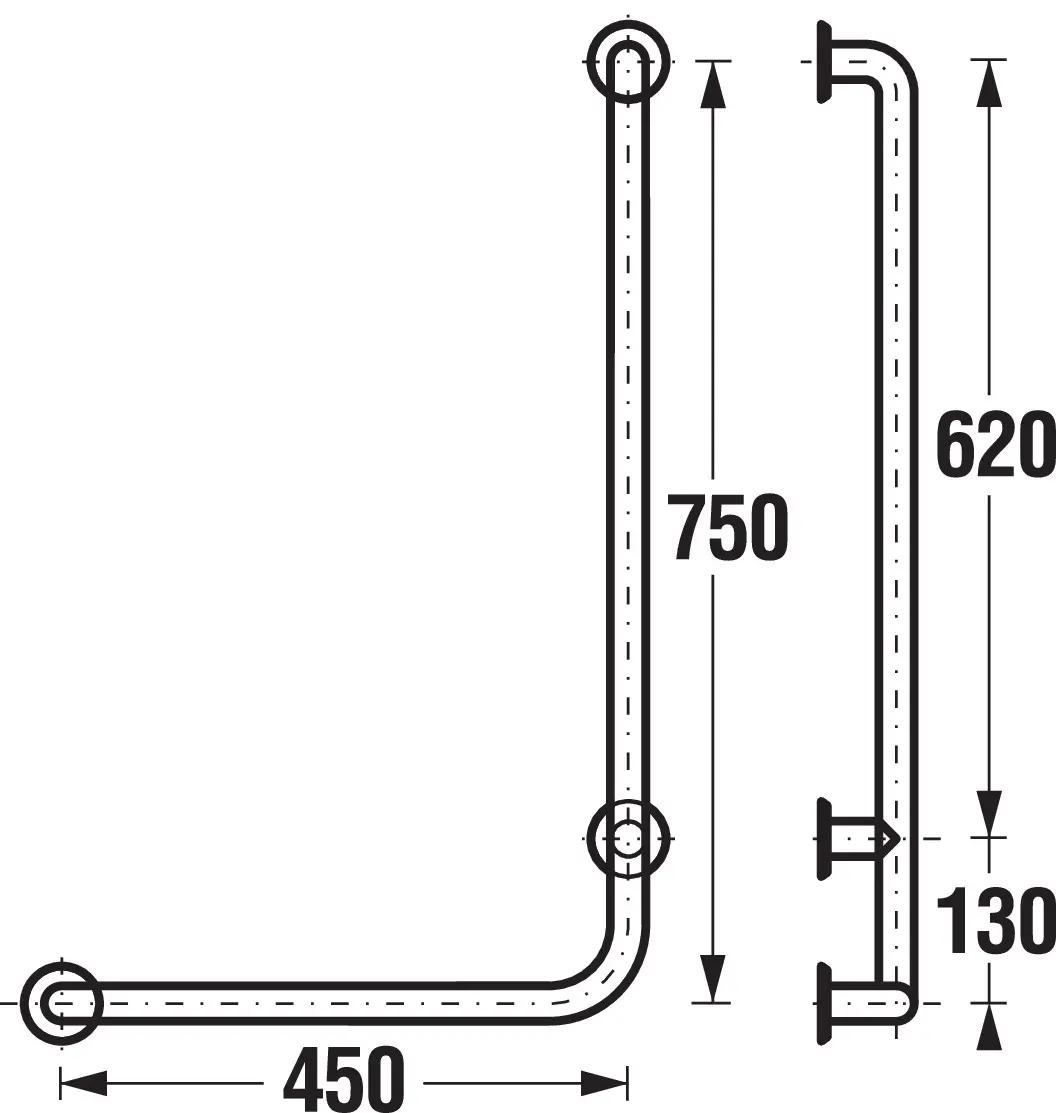 Vaste douchegreep (rechtse versie) met een lengte van 750 mm behoort tot de Universum barrièrevrije badkameraccessoires en is gemaakt van roestvrij staal. De greep voldoet aan wetgeving nr. 398/2009 Coll. over algemene technische eisen voor het gebruik van gebouwen door personen met beperkte mobiliteit, dat van kracht is sinds november 2009.