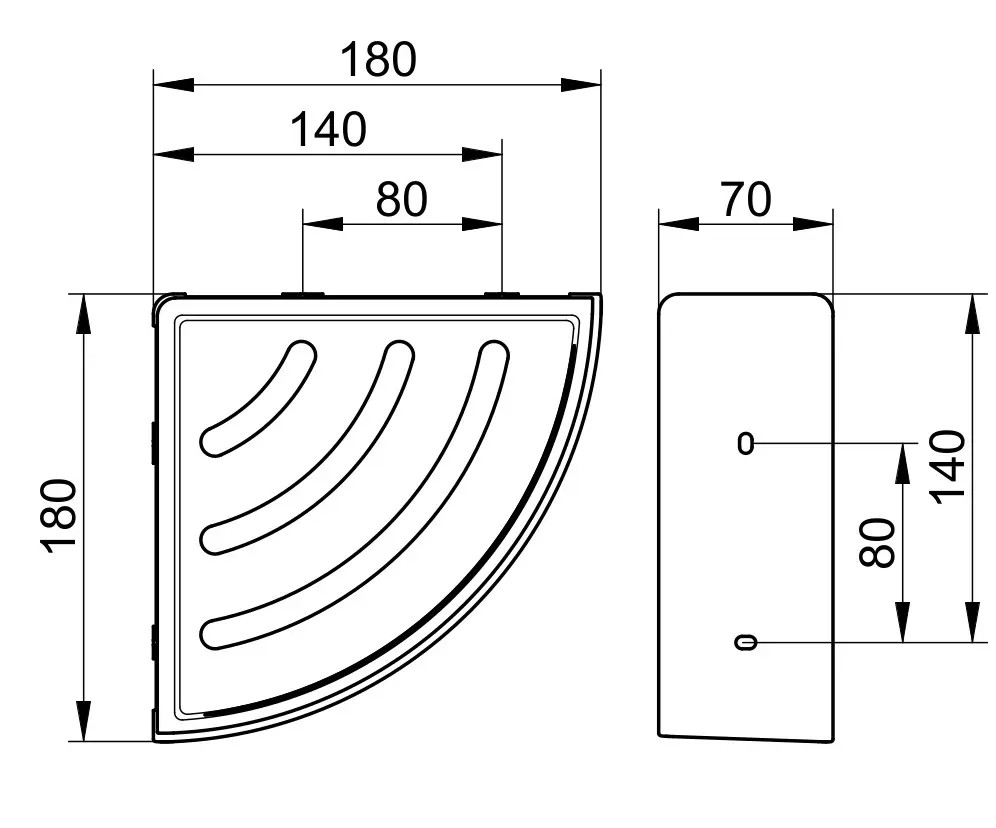 - totale afmetingen: 180 x 180 x 70 mm
