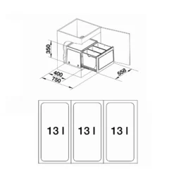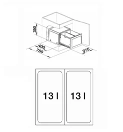 Blanco Botton II – Inbouw Afvalbak, Verdeeld, Inhoud 30 L 526376