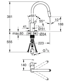 Grohe Essence – Keukenkraan Met Flexibele Arm En Schakelaar, Geborsteld Hard Graphite 30294AL0