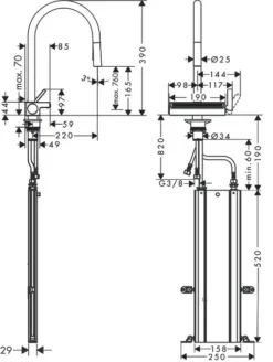 Hansgrohe M71 – 2- Gats Keukenkraan M7120-H200 Met Uittrekbare Handdouche, SBOX, Chroom 73818000
