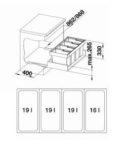 Blanco Flexon II – Inbouw Afvalemmer, Verdeeld, Inhoud 49 L 526641