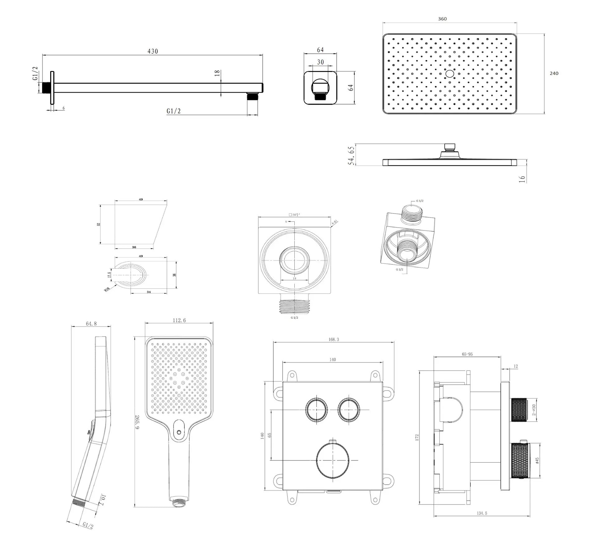 hoofddouche boven het hoofd 360 x 240 mm met douchearm 430 mm