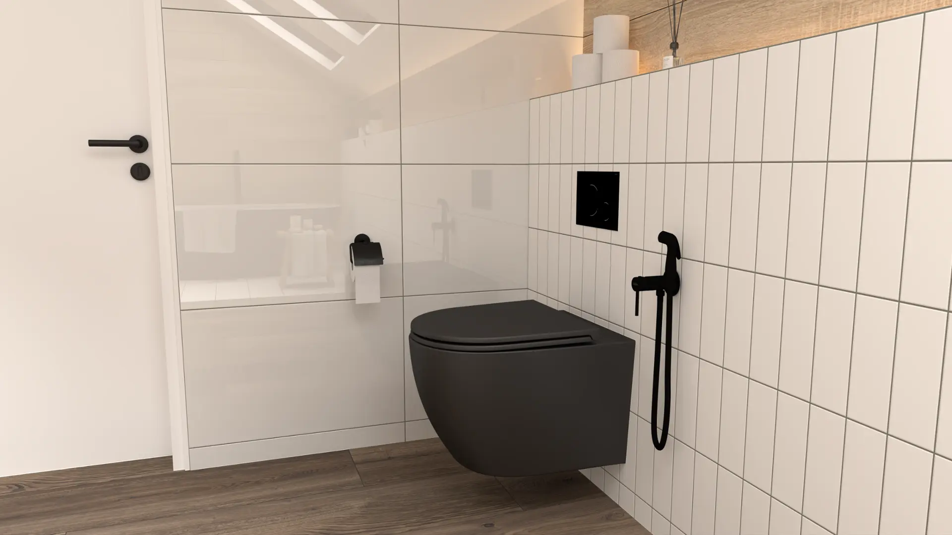- met douchehouder, metalen slang en douchekop met stopkraan