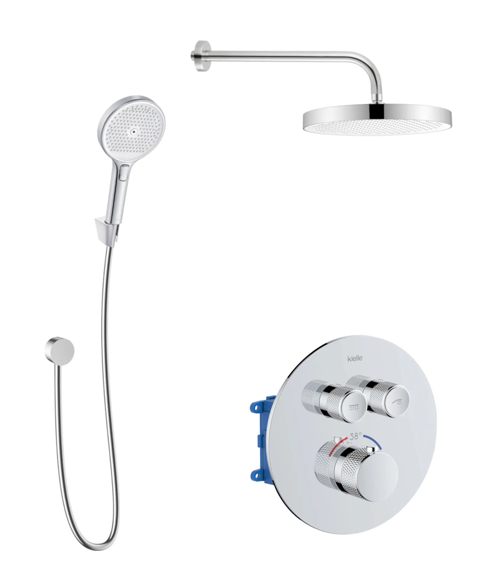 Thermostatische inbouwkraan voor twee apparaten inclusief kraanhuis