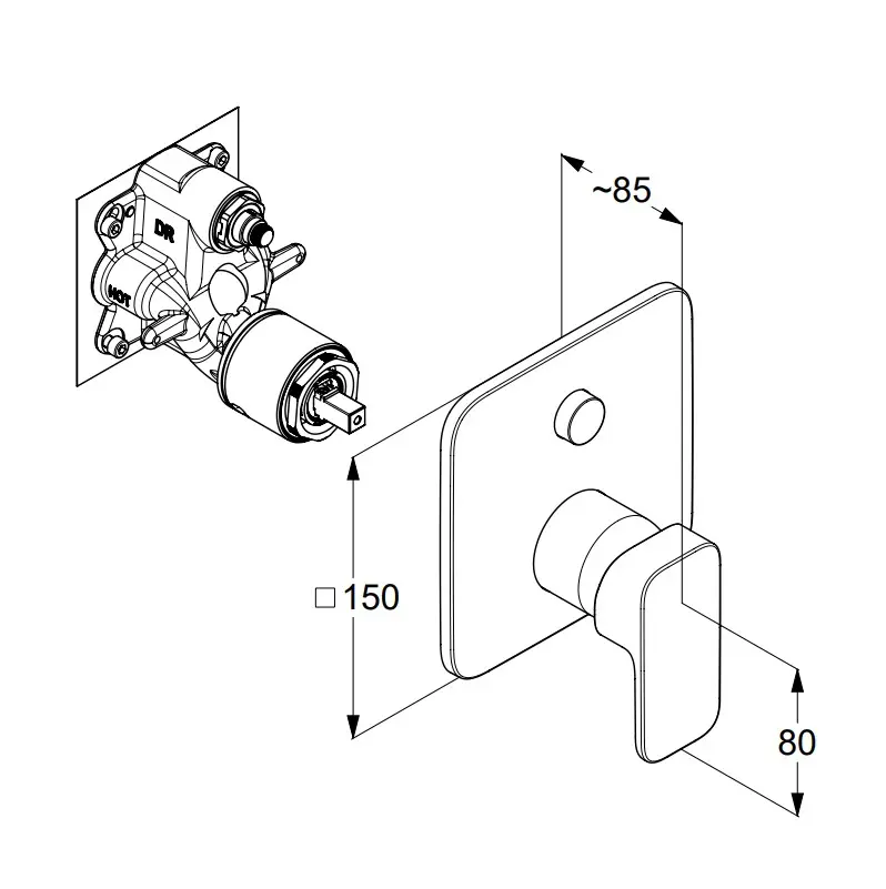 - afdekplaat afmeting 150 x 150 mm