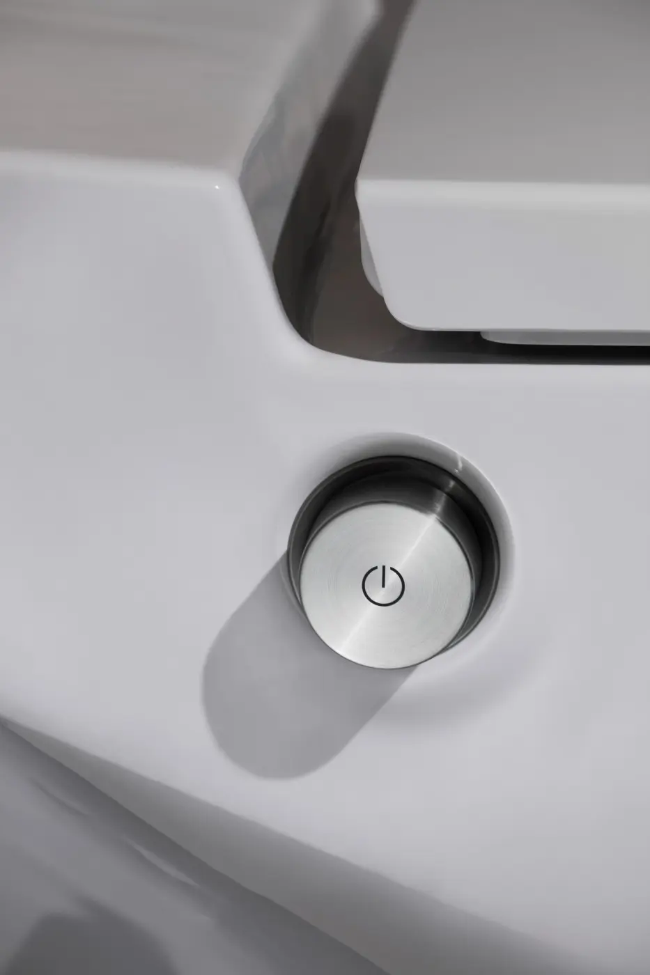 Het geweldige gevoel van frisheid en reinheid is altijd binnen handbereik met de draaiknop aan de zijkant, waarmee u de vele douchefuncties eenvoudig en intuïtief kunt bedienen. Andere functies en instellingen zijn toegankelijk via de afstandsbediening of mobiele app.