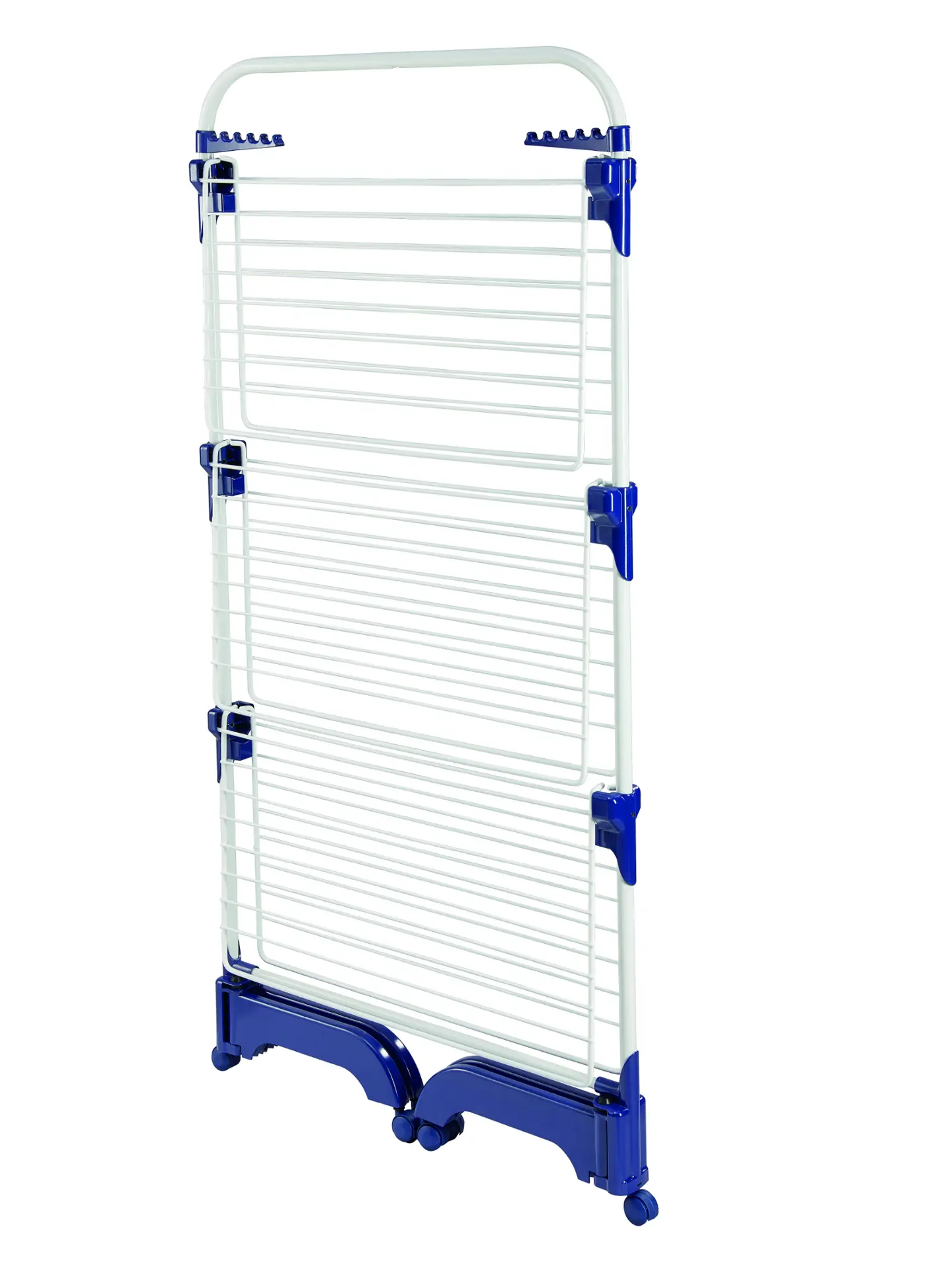 - het droogrek kan plat worden opgevouwen en bijvoorbeeld achter een kledingkast worden geschoven