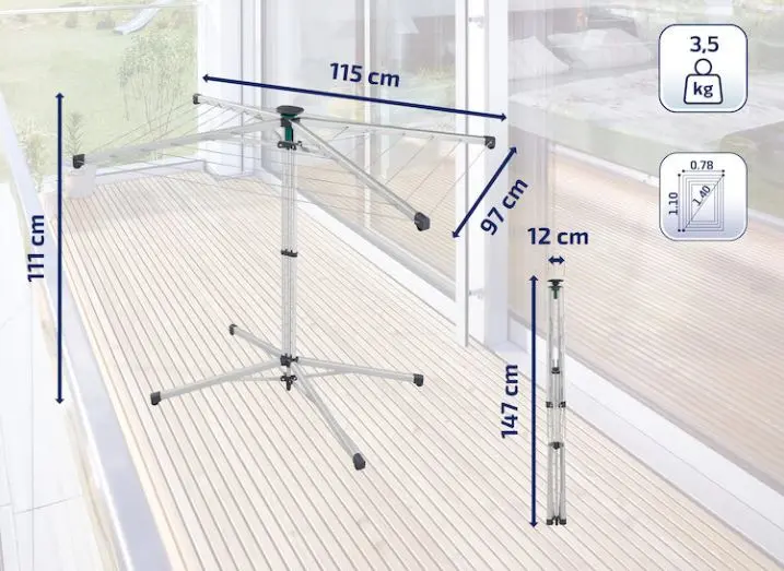 - de droogmolen kan gemakkelijk met één hand worden bediend