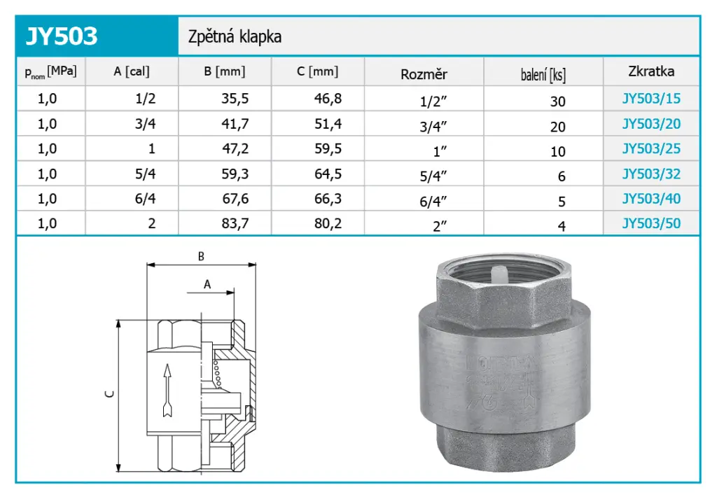 Universele terugslagklep. Ontworpen voor alleen koud water