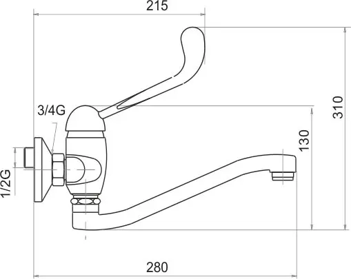 Keuken- of wastafelkraan met medische hendel