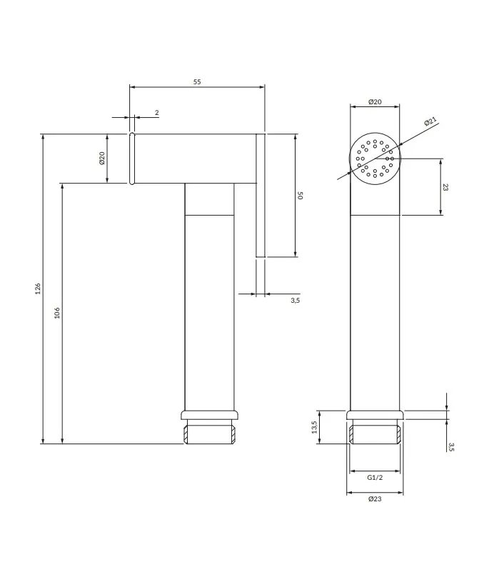 - aansluiting G1/2″