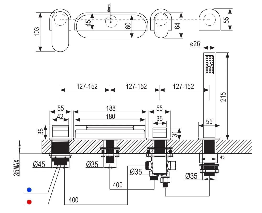 Badmengkraan CR 025.00 met 4-gats installatie op de badrand