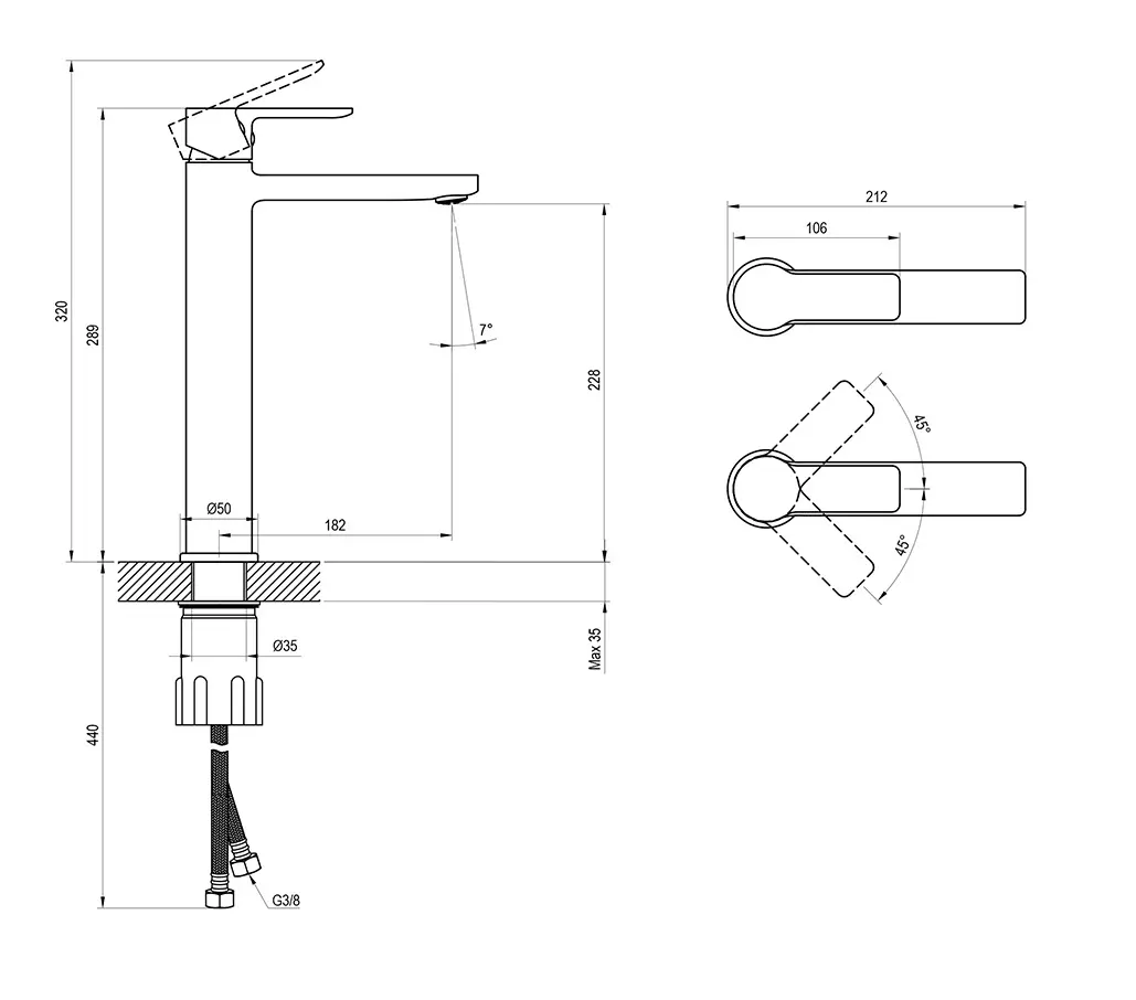 - aansluiting: G 3/8″