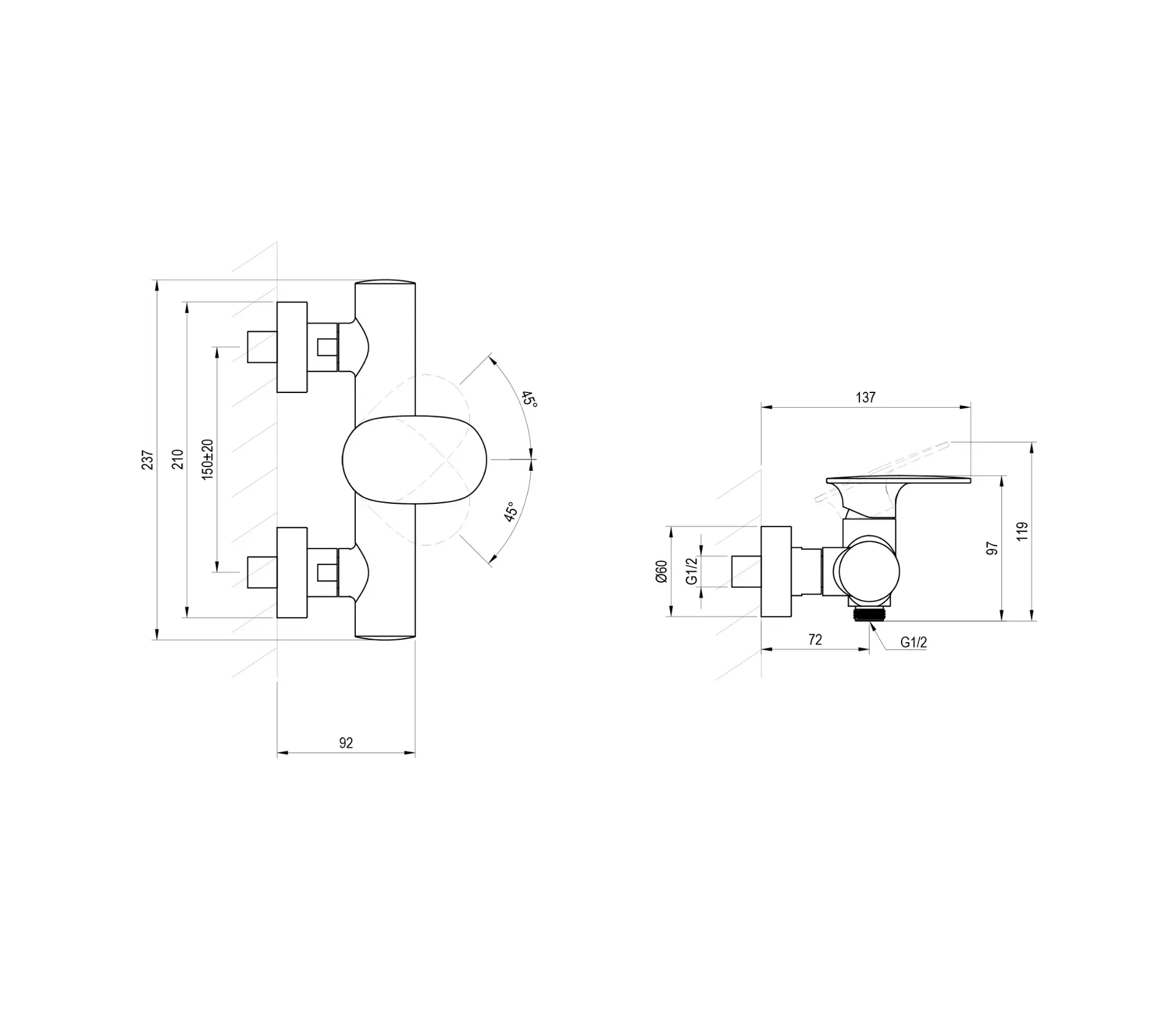 - aansluiting douche G 1/2