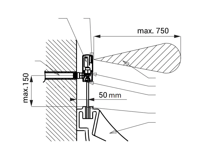 - reageert op de aanwezigheid van een persoon voor het urinoir op een afstand van maximaal 0,7 m van de sensor gedurende meer dan 7,5 s