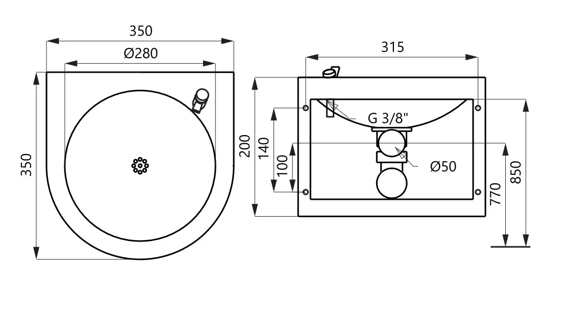 Roestvrijstalen drinkfontein, hangend model met drukkraan