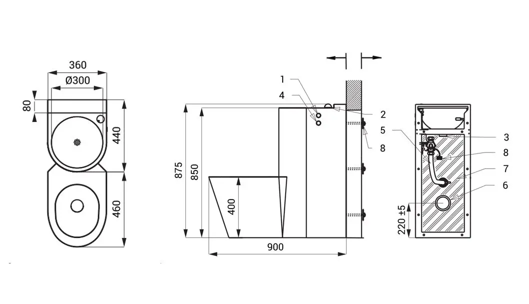 - aansluiting closetafvoer: Ø 100 mm (niet meegeleverd)