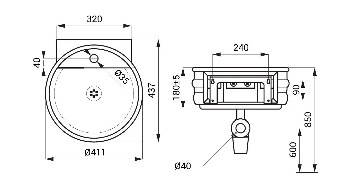 Roestvrijstalen ronde wastafel KEG met 1 kraangat