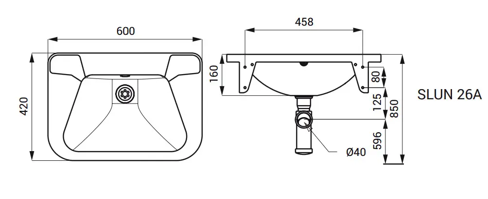 Roestvrijstalen wastafel, hangend model, met uitsparingen voor zeep