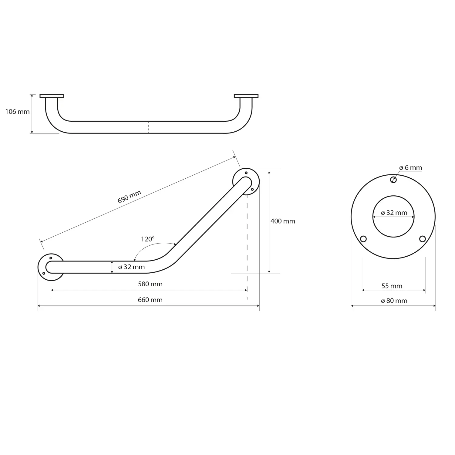 Steungreep, 120° gebogen