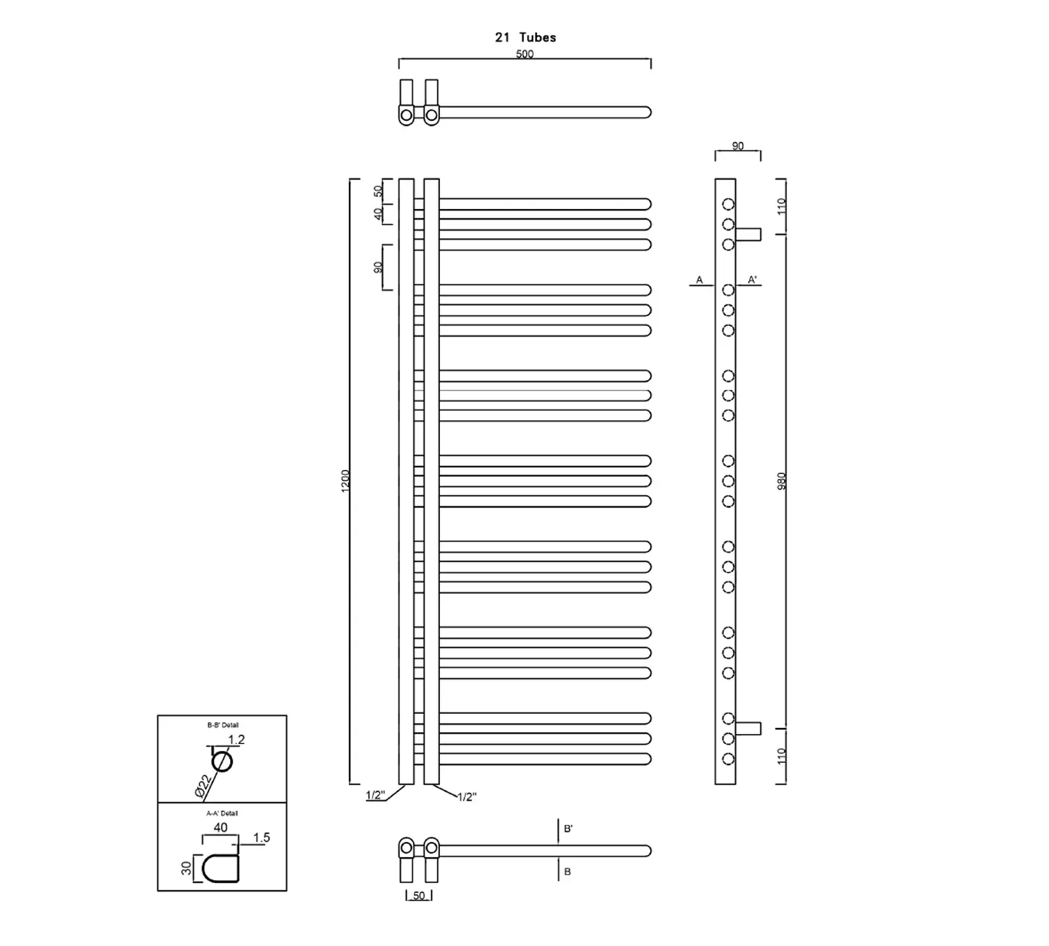 - verwarmingsstaaf maakt geen onderdeel uit van de radiator, moet apart worden besteld