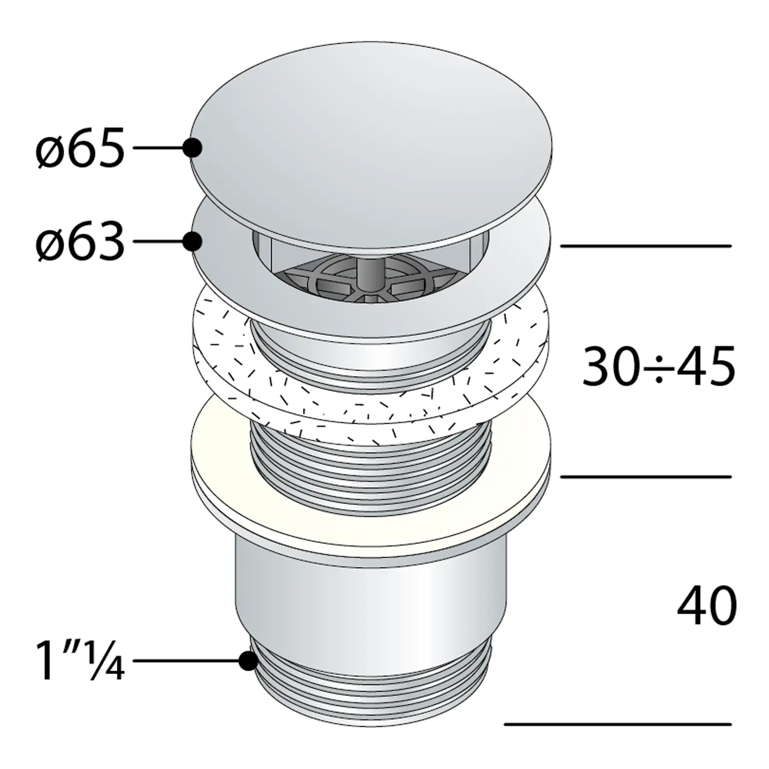 Niet-afsluitbare ronde waste voor wastafels zonder overloop