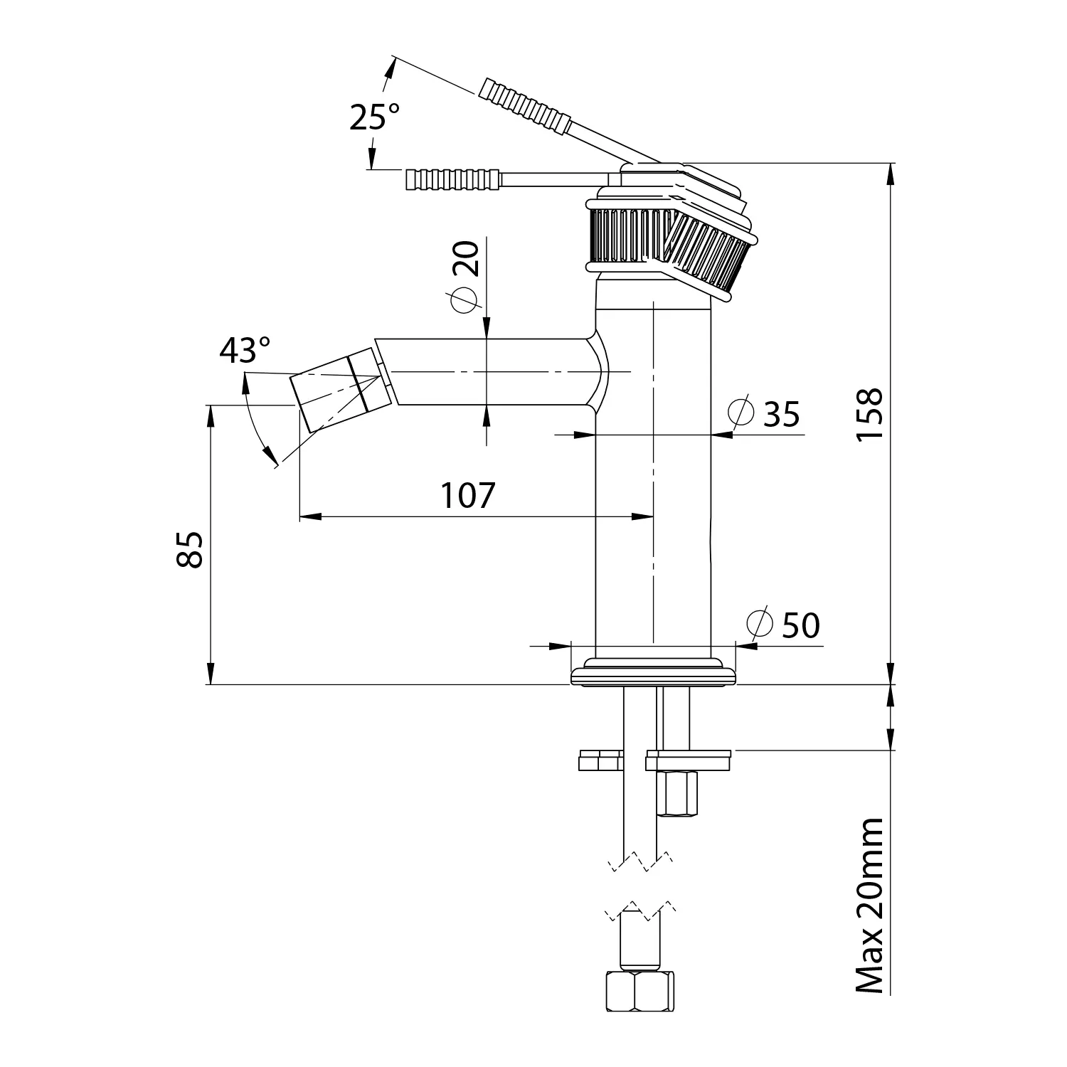 - Lengte uitloop: 107 mm