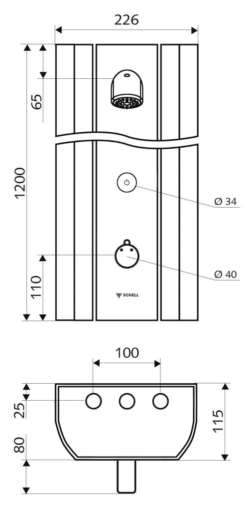 - Douchepaneel gemaakt van massief geëxtrudeerd aluminium profiel met hoogwaardig geanodiseerd oppervlak en geïntegreerde SCHELL douchegarnituren