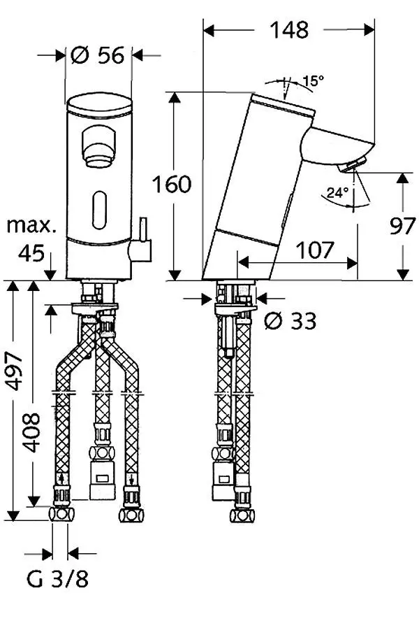 - watertemperatuur max. 70 °C (kortstondig gebruik)