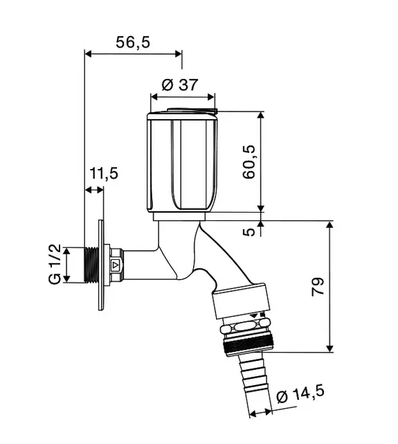 - uitlaat: slangfitting Ø 14,5 mm (DN 20 G 3/4 buitendraad)