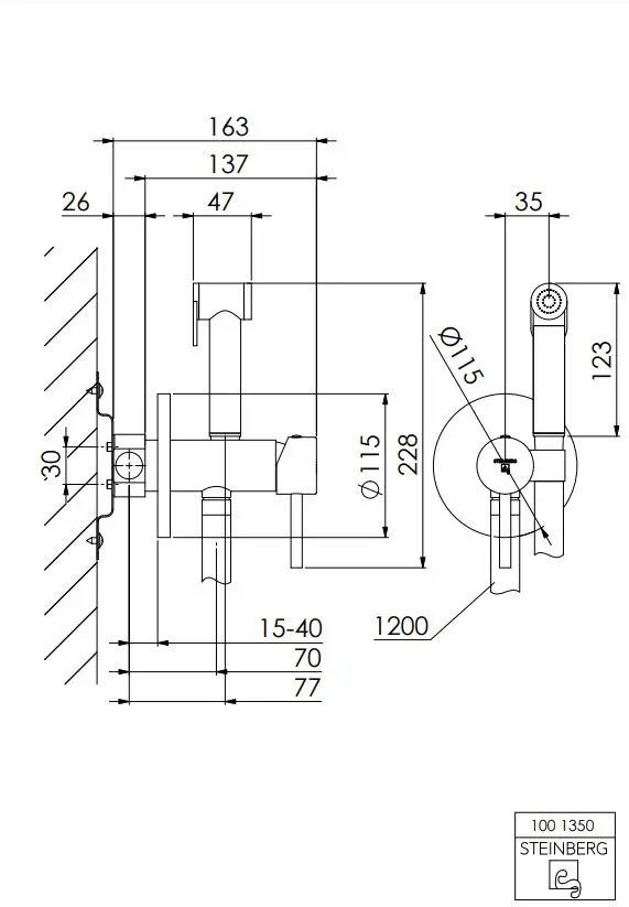 - lengte van de slang: 1200 mm