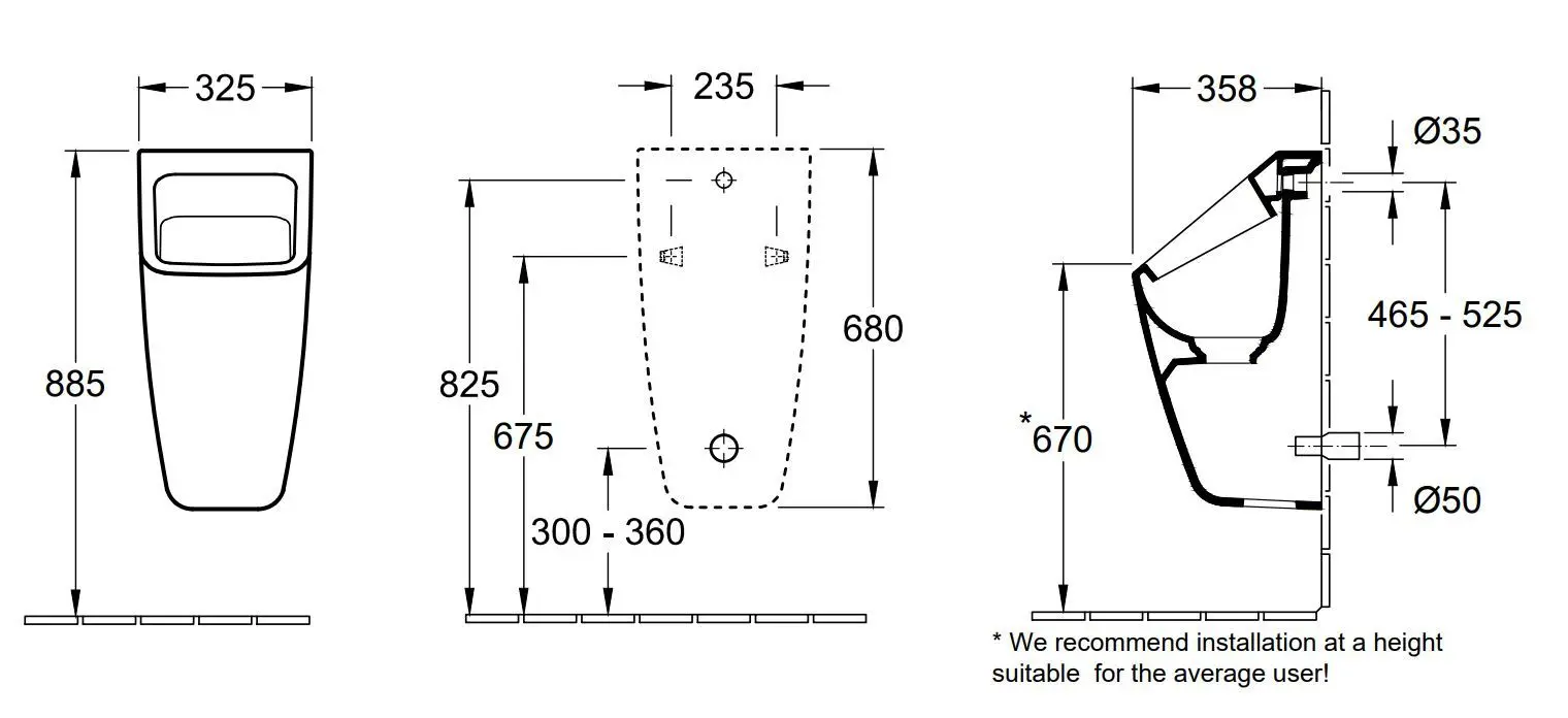 ViChange speciaal systeem voor sifonurinoirs, met in hoogte verstelbare afvoer; sifon kan worden vervangen zonder het urinoir te demonteren.